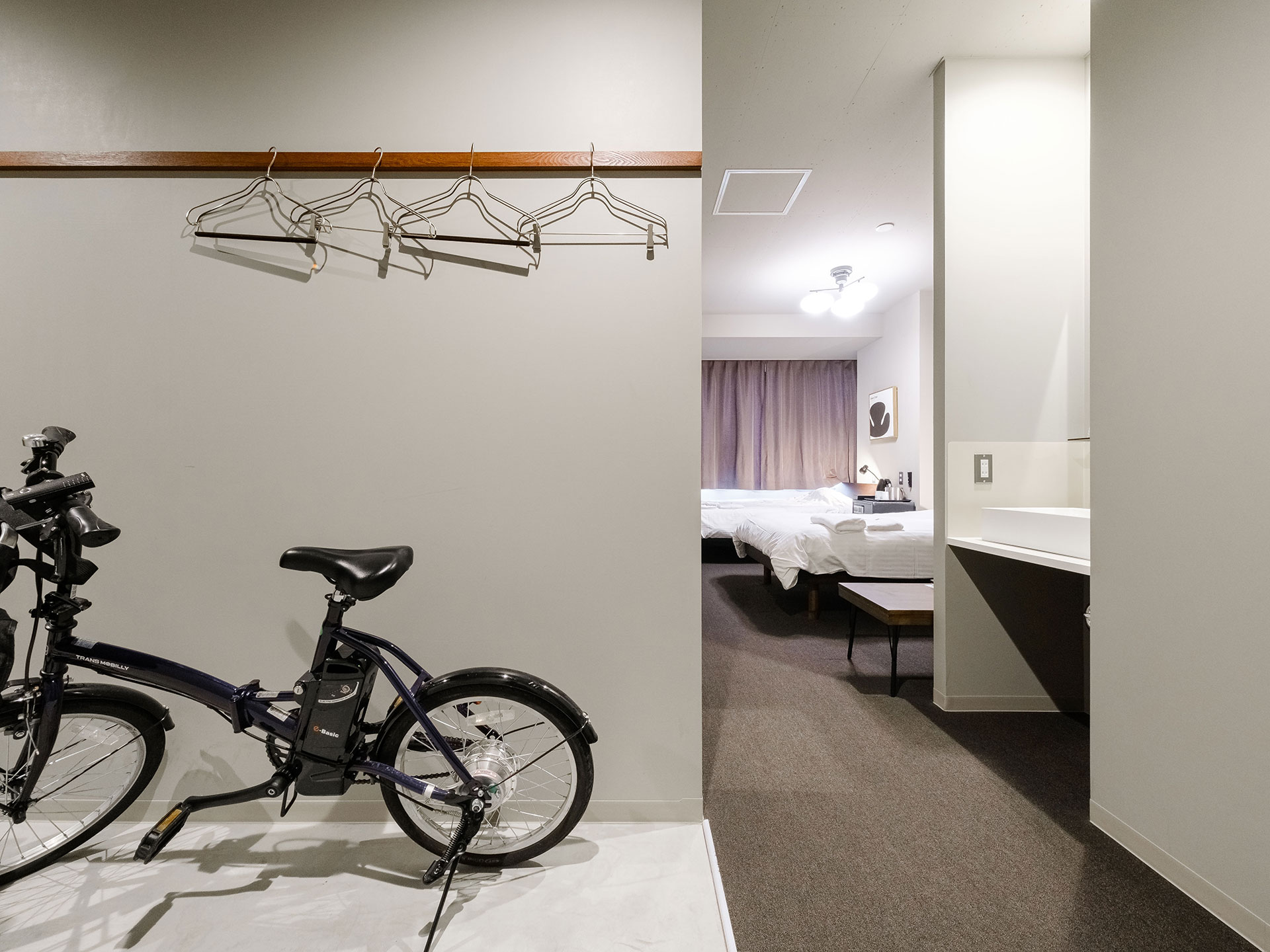 一人ひとりの旅に合わせた全33室。 コンパクトで機能的なツインルームから、グループで賑やかに過ごせる2段ベッド付きのファミリールームまで。 一部の客室には、小樽の坂道も楽々進める「電動自転車」を完備しています。思い立ったら、すぐ街の散策へ。