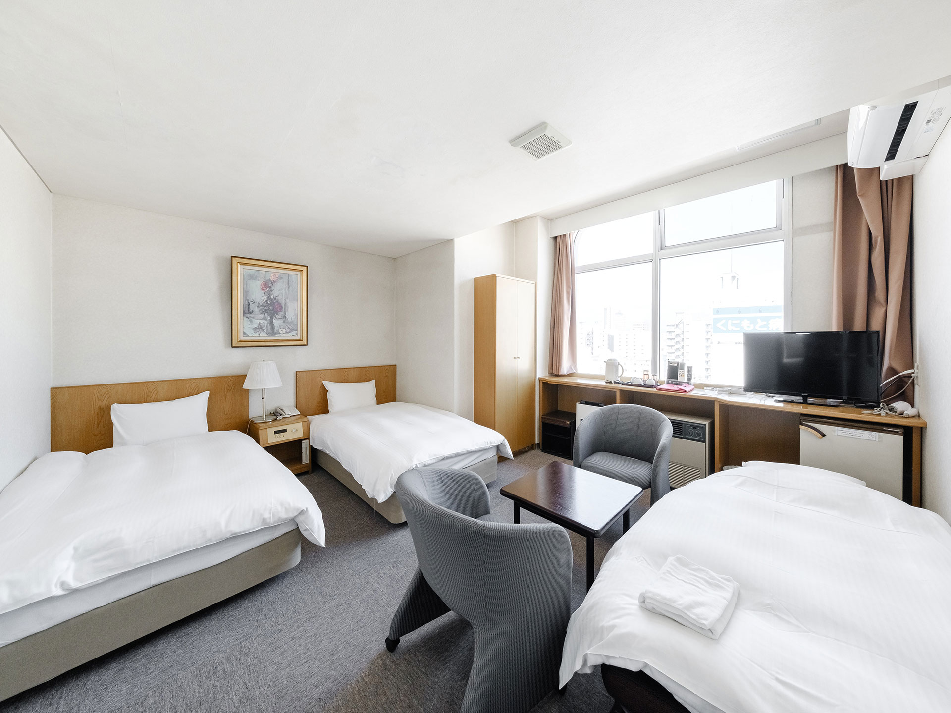 小さなお子様連れのファミリーに大人気の「広々とした和室」から、 お一人様でもゆったり過ごせるシングルルームまで。 全室Wi-Fi完備で、テレワークや長期出張でも快適にお過ごしいただけます。