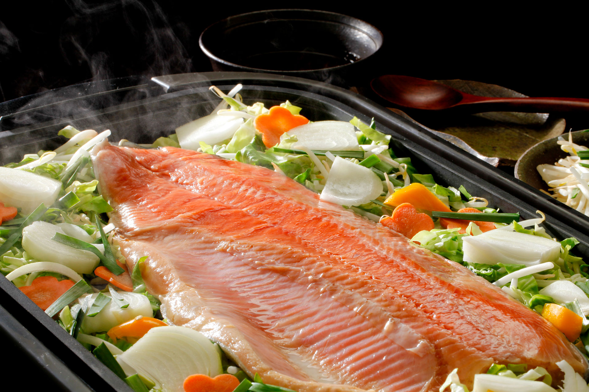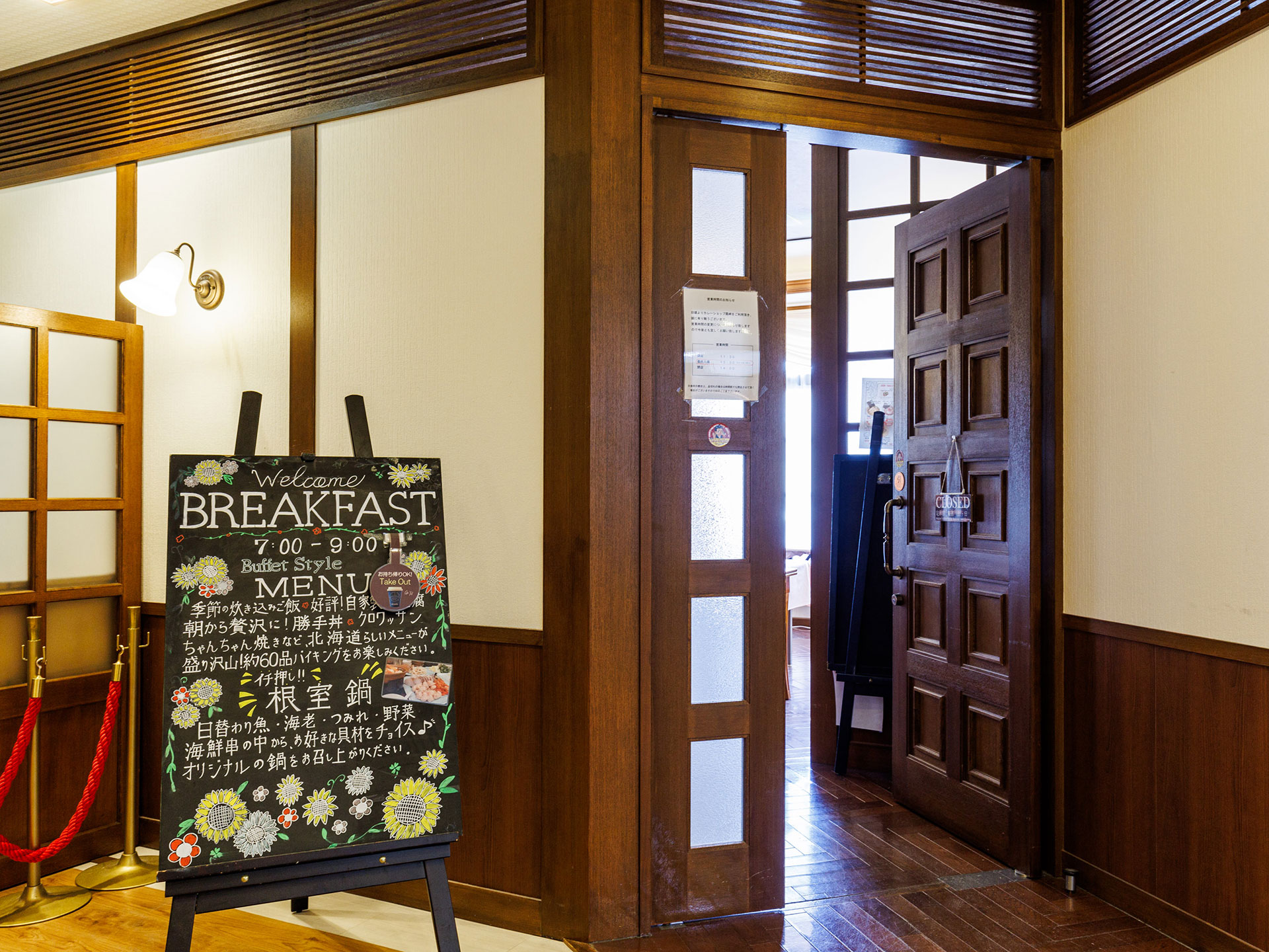 一日の始まりは、根室ならではの豪華な朝食から。当館自慢の朝食バイキングでは、お好みの海鮮をのせて作る「勝手丼」や、「海鮮味噌汁」など、漁師町ならではのメニューをご用意しています。豊かな大自然が育んだ旬の味覚を心ゆくまでお楽しみください。
